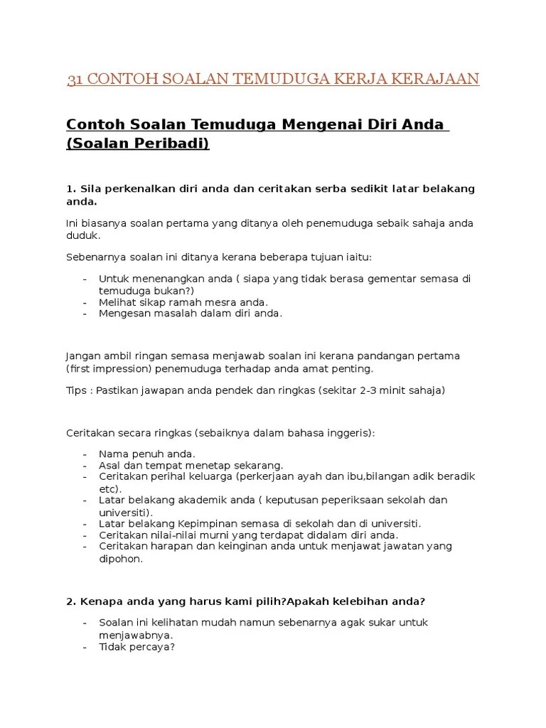 Sekiranya pensyarah memberikan anda tarikh di mana anda akan dihubungi sekiranya anda dapat jawatan itu. Ramai penemuduga memilih soalan memperkenalkan diri sebagai ice breaking sebelum bertanya soalan lain. Jika perkenalanmu dirasa unik dan lain dari yang lain, namamu akan banyak diingat. Cara memperkenalkan diri semasa temuduga (fresh grad & berpengalaman). Apa cara terbaik untuk menjual diri anda dalam temuduga kerja?